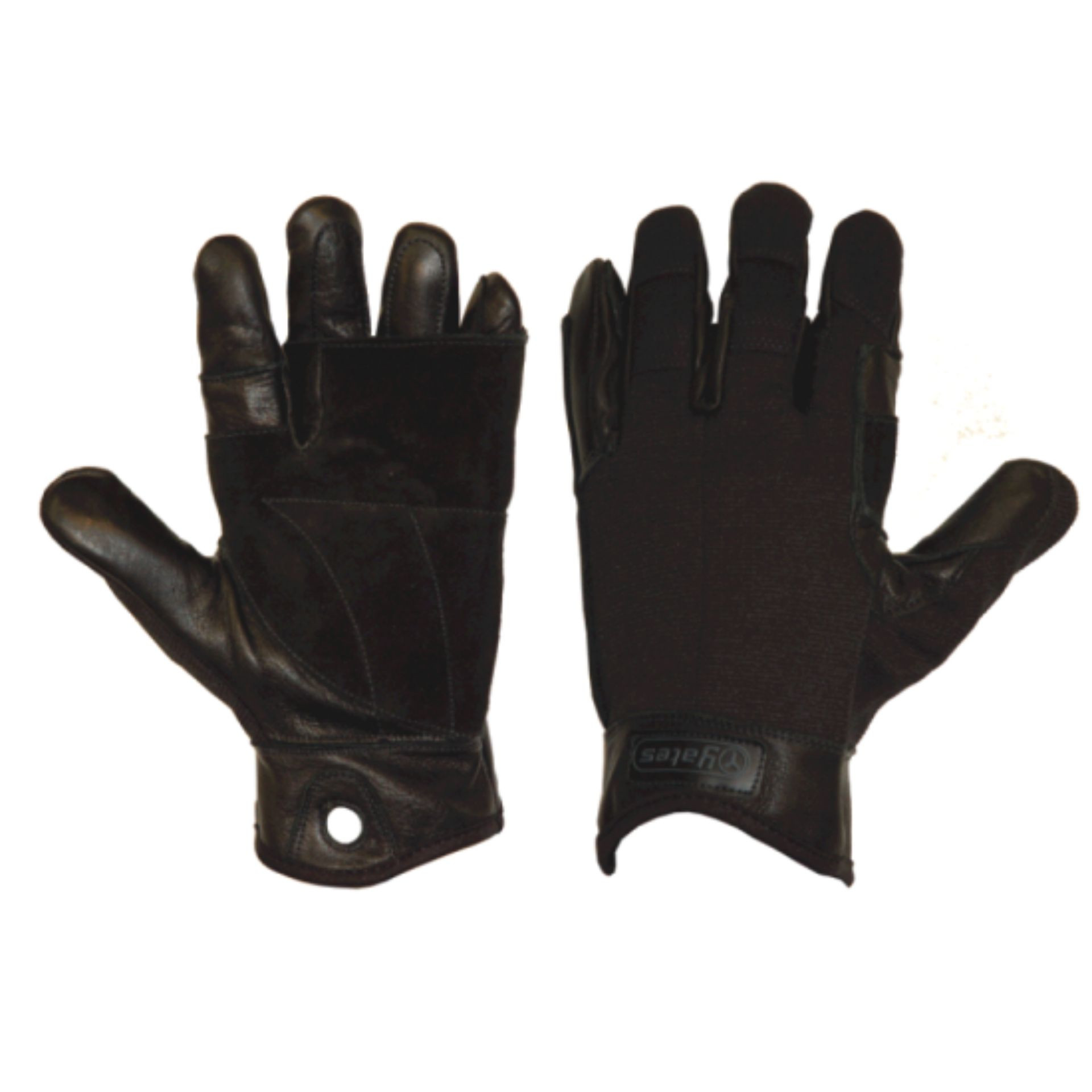 The Yates Fast Rope Gloves feature an innovative dual palm design to add extra protection from heat while descending a rope. The second palm covers all but the finger tips with extra articulation allowed for the trigger finger. A carabiner hole in the wrist allows the user to clip these to their harness for quick access. Built with full grain leather and sewn with Kevlar thread for durability. These run a little small so if in doubt, size up. Available in black or tan.