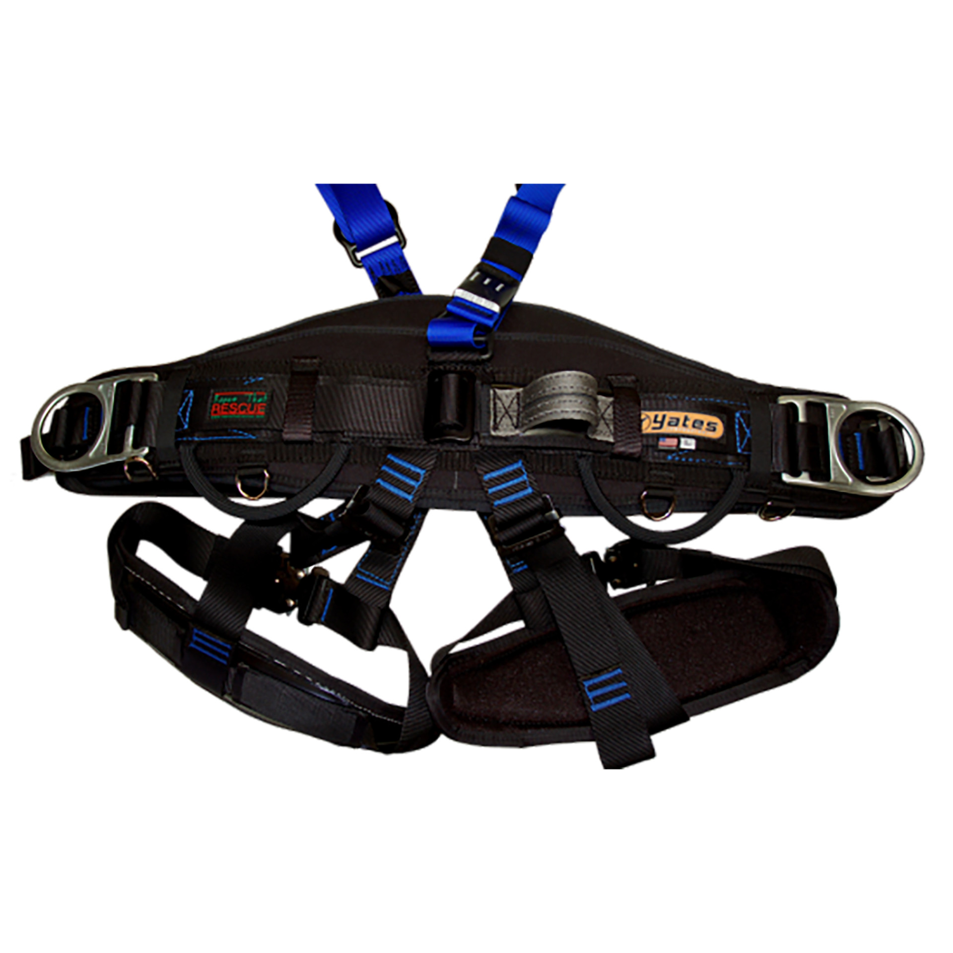 Yates Gear permits the attachment of multiple positioning lanyards/straps to the lateral (side) D rings under the supervision of a competent person when the user is utilizing an appropriate fall arrest system.