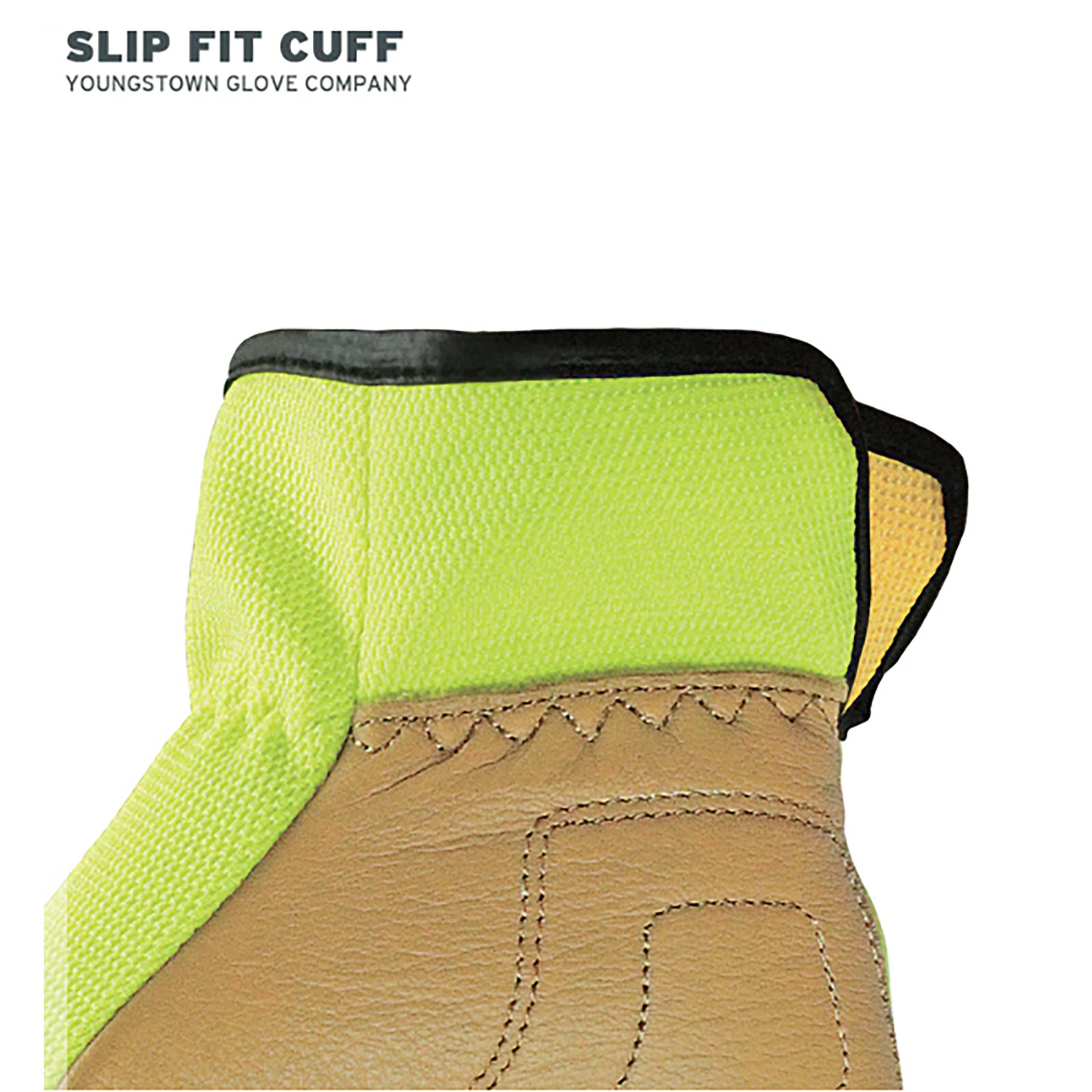 Youngstown’s Cut Resistant Safety Lime Hybrid is a durable, cut-resistant, puncture resistant work glove that is ergonomically designed for superior dexterity and comfort. Every inch is lined with Kevlar® fiber by DuPont™ for strength and durability. The top of hand is made of a breathable, safety lime stretch nylon featuring reflective 3M™ Scotchlite™ for high visibility and safety awareness. The palm is made with high quality goat grain leather that is double-layer reinforced over the saddle and main fingertips for greater protection and durability.