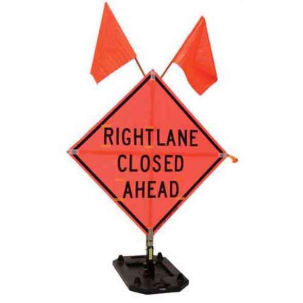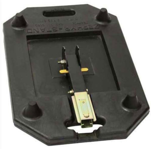 The Zephyr sign stand is the easiest to set up and trouble free sign stand on today's market. Durable recycled rubber is molded around a steel plate where the vertical mast is hinge mounted. Two molded in carrying handles. The 45 lb. base is designed to prevent signs from tipping. Multiple stands can be stacked for storage. No legs to unfold, bend or extend into traffic. Use only signs with plastic pockets to quickly attach sign to stand.
